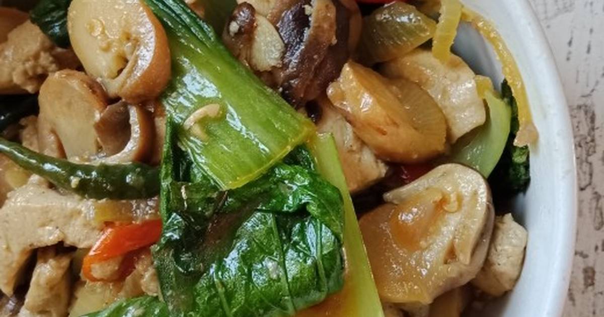 Pokchoy atau bokchoy yang punya bongkol renyah bisa diblansir kemudian disiram saus tahu dan jamur yang gurih lembut. Sausnya membuat bokchoy jadi makin enak rasanya.