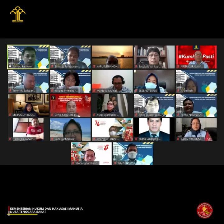 MataramPost.com– Kepala Kantor Wilayah Kemenkumham NTB, Haris Sukamto, dan Kepala Divisi Pelayanan Hukum dan HAM, Harniati, beserta jajaran mengikuti kegiatan presentasi awal proposal penelitian yang berjudul “Desain Pengaturan Cipta Kerja dalam Menghadapi Transformasi Social Pasca Pandemi. Studi Kasus Pelaku Usaha Kecil dan Mikro pada Industri Pariwisata di Danau Toba, Labuan Bajo, dan Mandalika”.