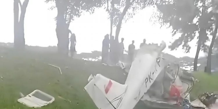 Berdasarkan foto dan video yang beredar di media sosial, pesawat dengan kode PK-IFP tersebut hancur di tengah rerumputan. Pesawat berwarna putih ini terlihat rusak parah, menandakan dampak keras dari kecelakaan.