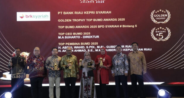 PEKANBARU – Bank Pembangunan Daerah (BPD) Riau Kepri Syariah atau Bank Riau Kepri Syariah (Perseroda) berhasil meraih penghargaan Top BUMD Awards 2025 dengan predikat Bintang 5.